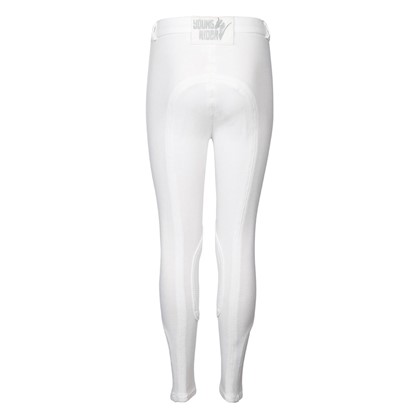 Rijbroek met zakje met ritssluiting, contrast kleur elastische inzet aan de onderzijde van de pijpjes, rondgenaaid zitvlak, leuke badge op de tailleband. De rijbroek heeft een slim fit pasvorm.